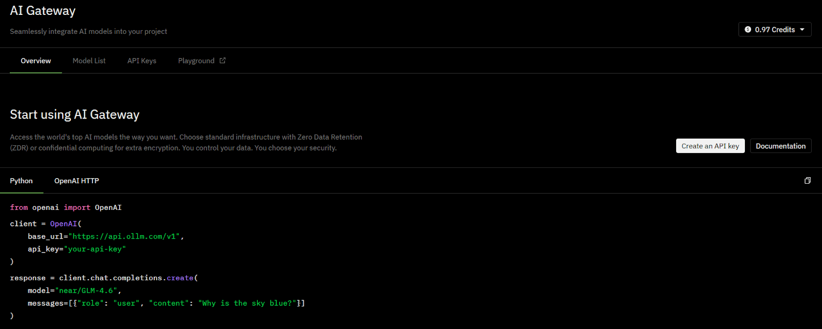 Most AI gateways, including OLLM, expose an OpenAI-compatible API surface. This allows teams to switch providers by updating the endpoint and credentials while keeping the rest of the application code unchanged. For production systems, this compatibility reduces migration risk and avoids deep refactoring when models or providers change.